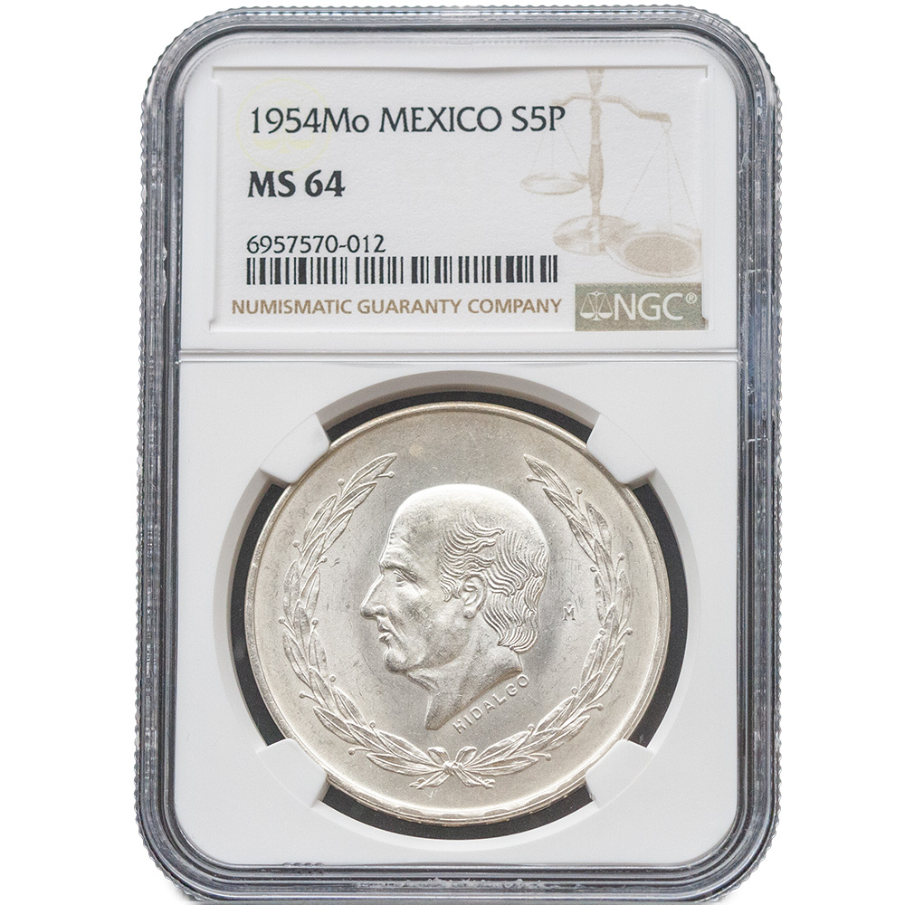 1954-Mo Mexico Hidalgo 5 Peso NGC MS64