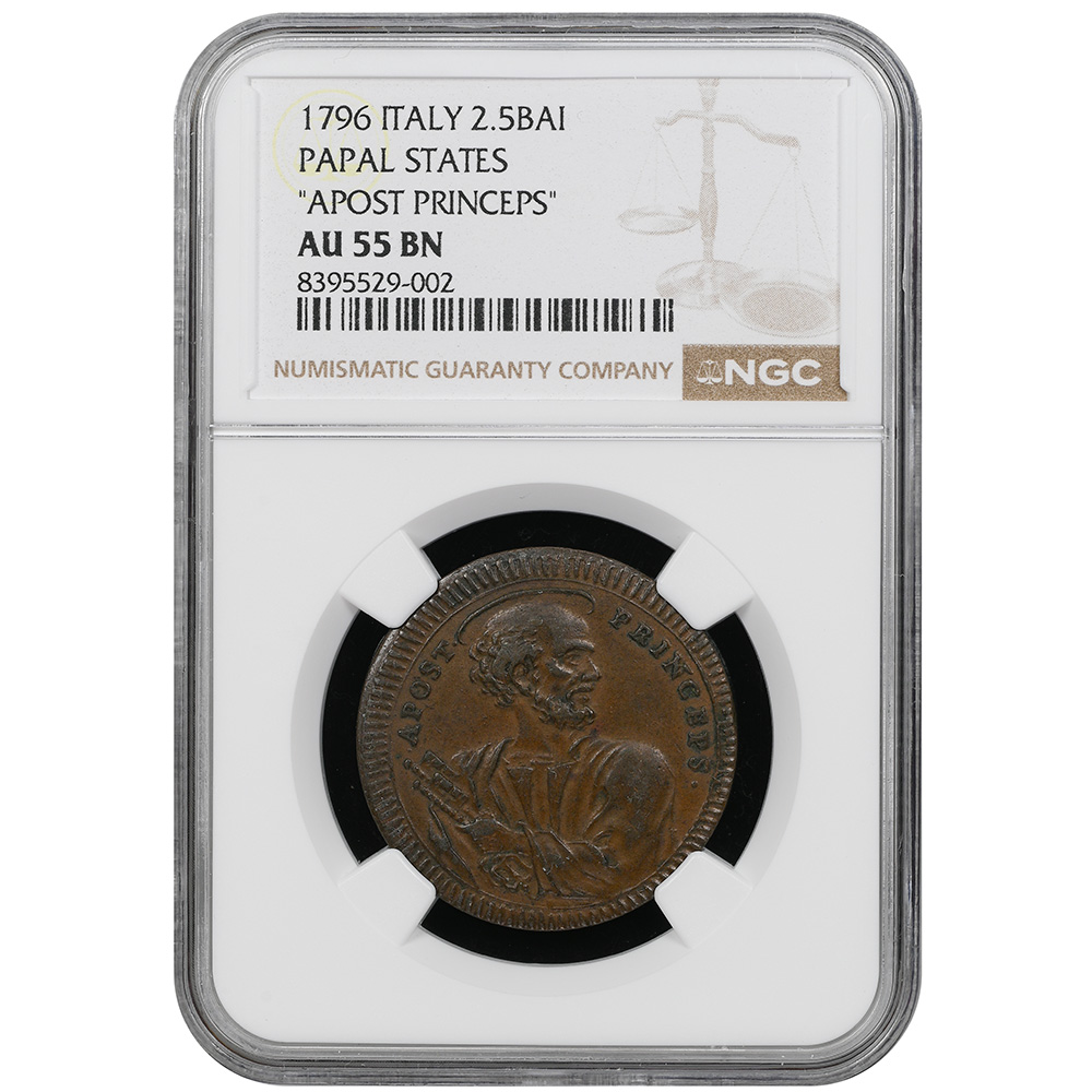 Italy Papal States 1796 Puis VI 2 1/2 Baiocchi NGC AU55