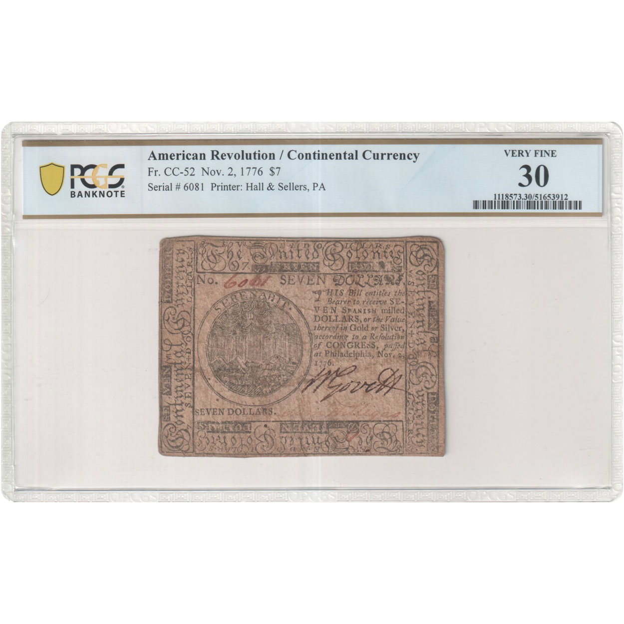 Continental Currency has long been prized as one of the earliest forms of national U.S. paper money, and the $7 denomination is especially attractive to collectors due to its Revolutionary War provenance.