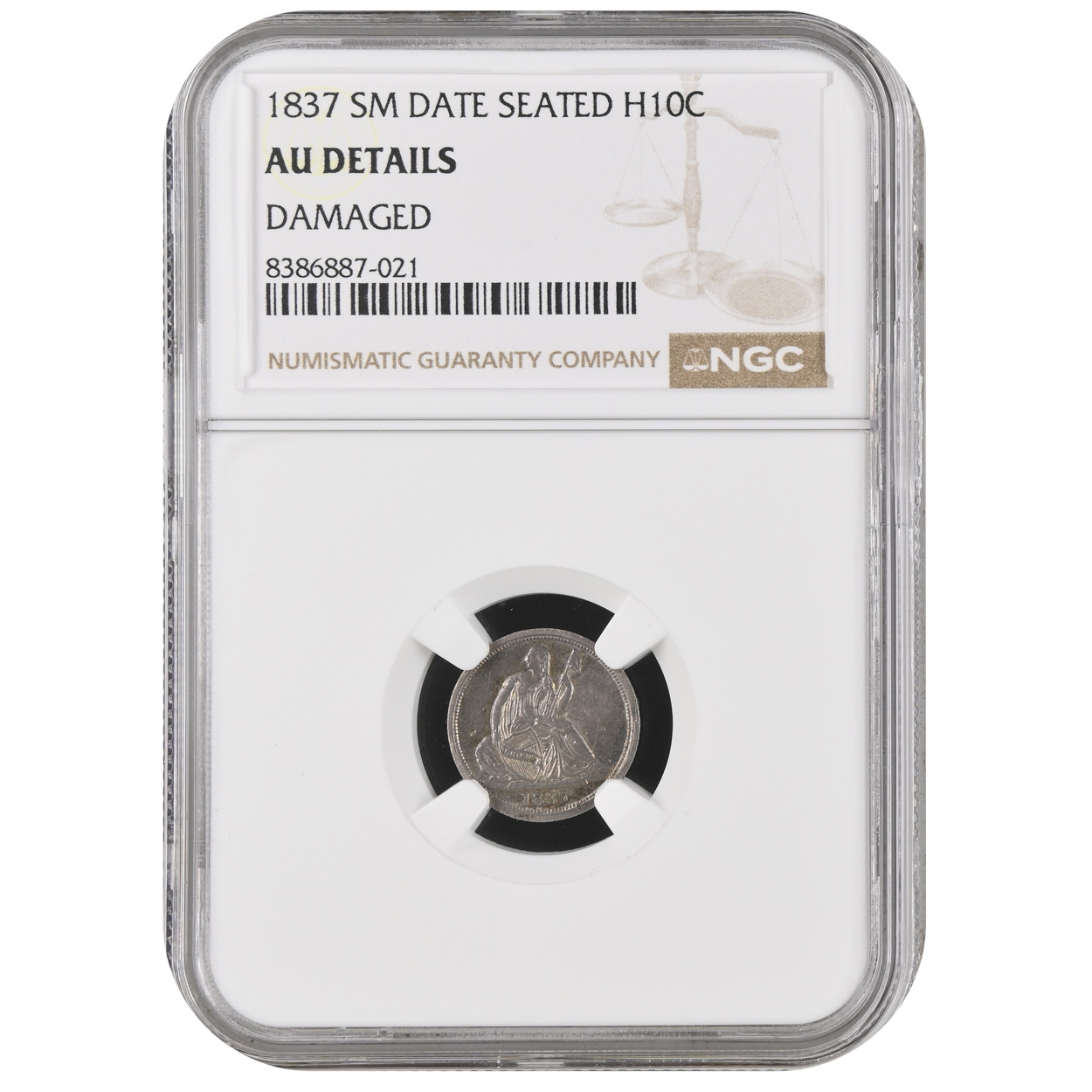First introduced in 1837, the Seated Liberty dime replaced the earlier Capped Bust design. This small-date version represents the second die variety of the year