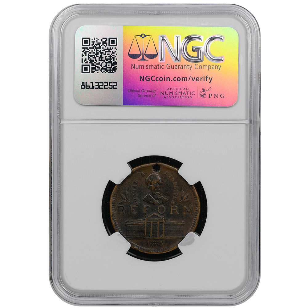 DeWitt-listed Cleveland medals are popular among presidential and political exonumia specialists. This VF Details example balances affordability with strong eye appeal—ideal for building a complete 1884 campaign set. Find more alike here!