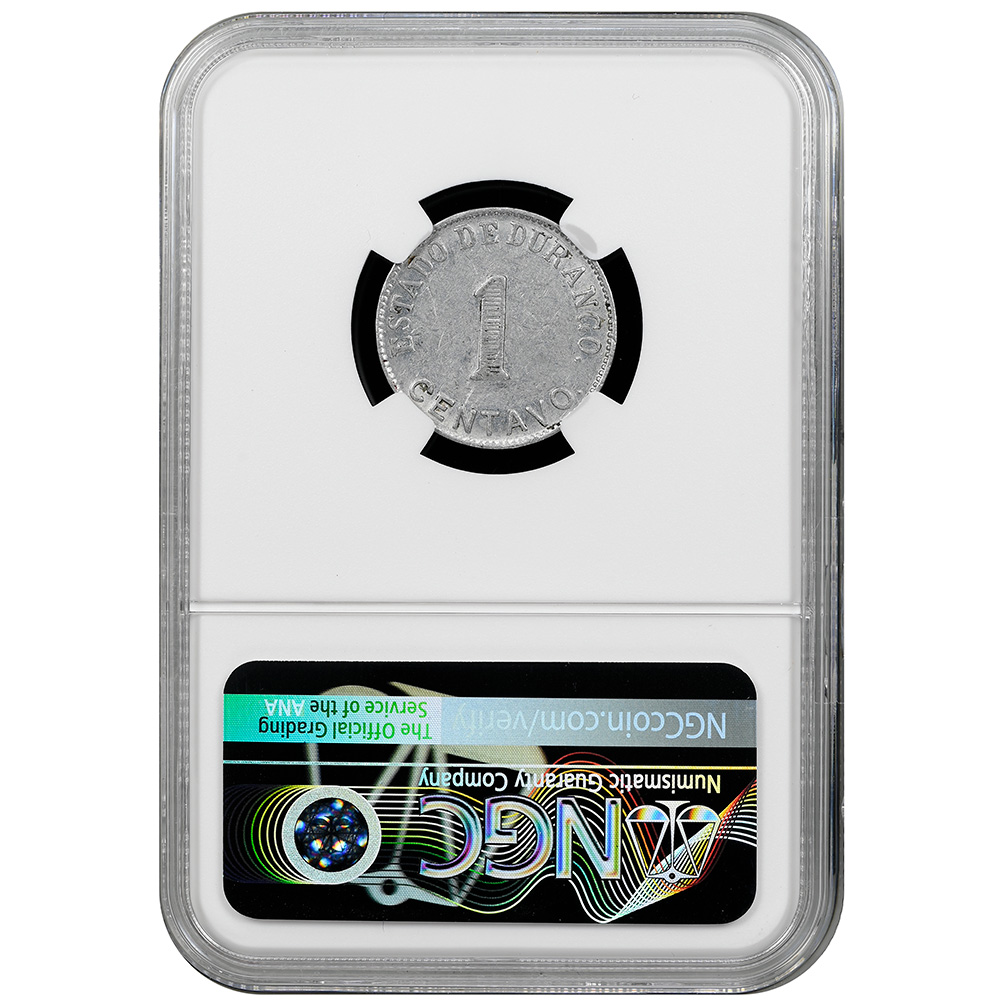 CVC & Collectables presents a Revolutionary-era Durango state issue: Aluminum 1 Centavo (1914), certified NGC AU 55. A classic moneda de necesidad struck during the cash shortages of the Mexican Revolution.
