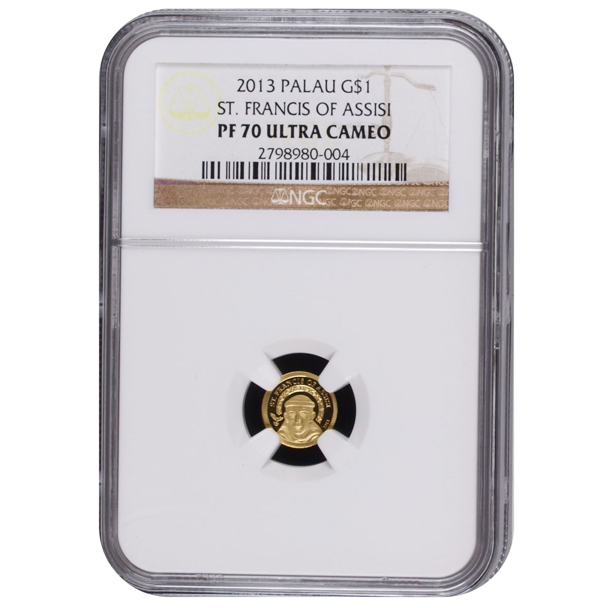 Reverse Design: Portrait of St. Francis of Assisi with a dove, symbol of peace, encircled by the inscription ST. FRANCIS OF ASSISI 2013