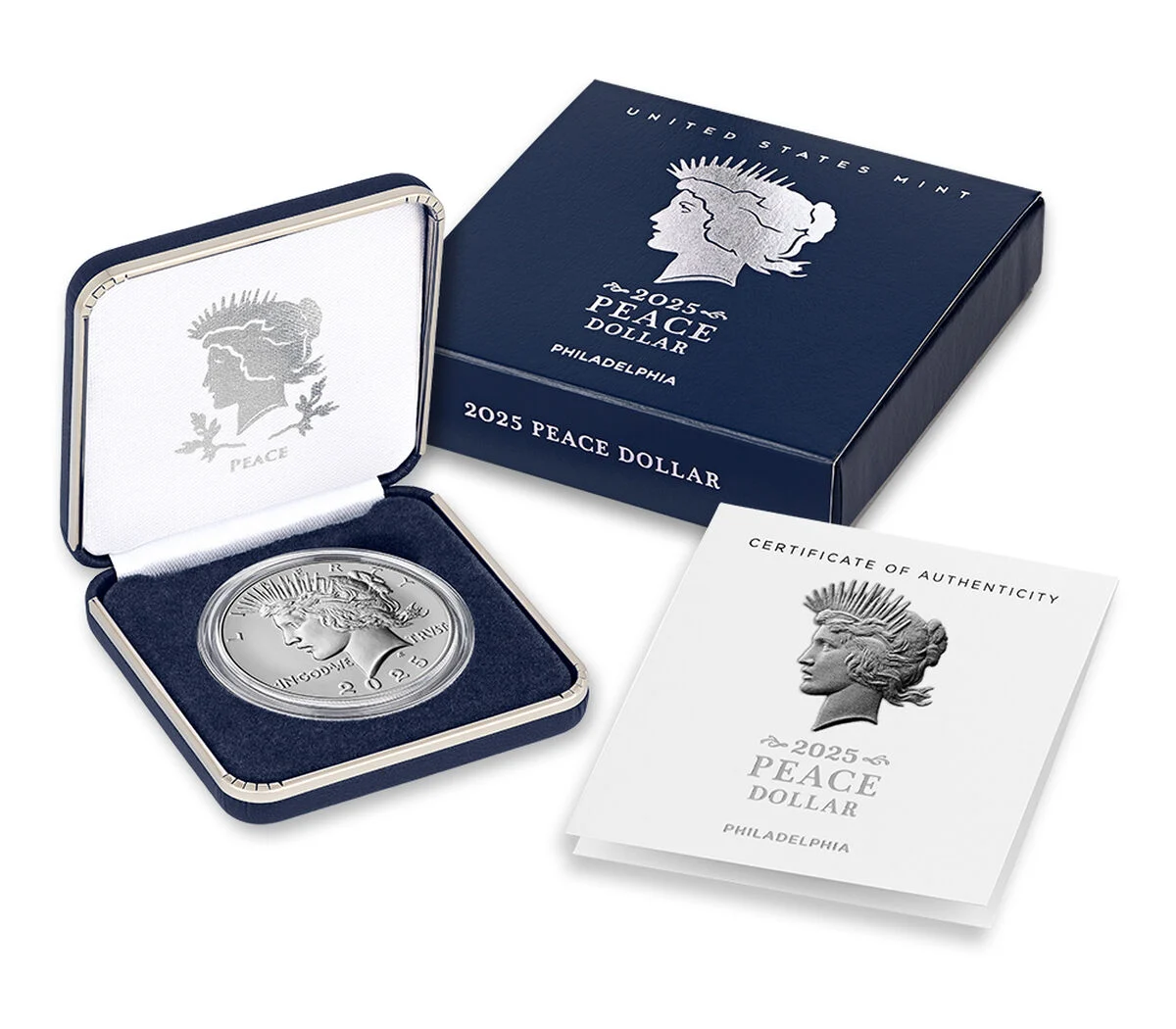 First issued in 1921, the Peace Dollar marked the end of the Morgan series and celebrated America’s hope for peace following the Great War. Its bold design by Anthony de Francisci quickly became one of the most iconic U.S. coinage images. The 2025 issue continues the modern tribute series, pairing tradition with cutting-edge minting.