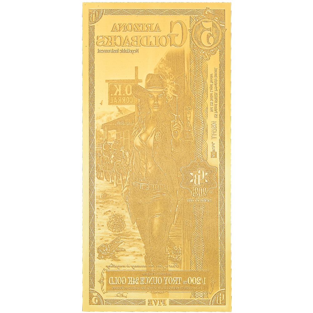 CVC & Collectables presents the 5 Arizona Goldback, a beautifully crafted gold foil note featuring Lex et Ordo—the virtue of law and order. This bold design draws inspiration from Tombstone’s legendary past, capturing the courage and discipline required to uphold justice in the Old West.