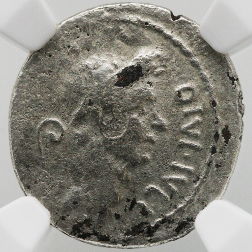 This ‘plated’ or ‘fourree’ Julius Caesar 44 BC Roman Imperatorial Plated Denarius was designed to resemble solid counterparts and circulated until the core broke and revealed itself. When late Roman silver coinage deteriorated to the point that the alloy was no longer silver in color, official mints applied a thin silver wash to remind users there was some silver in the alloy. As good silver coins circulated, the production of plated pieces resumed, continuing long after the ancient era.