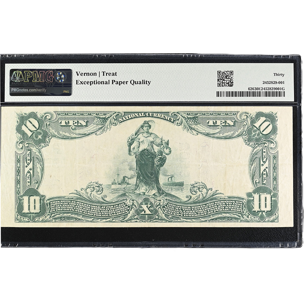 CVC & Collectables presents a classic West Coast National Bank Note from Oakland, California. This 1902 $10 Plain Back represents early 20th-century American banking, issued by the Central National Bank of Oakland and preserved with Exceptional Paper Quality by PMG.