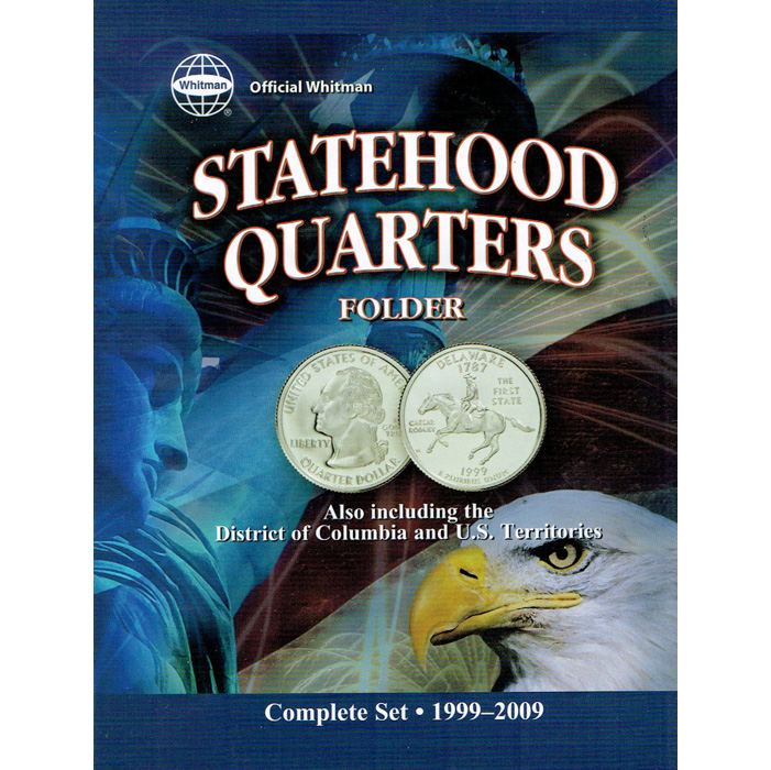 Organize and showcase your collection of Statehood quarters, including those from the District of Columbia and U.S. Territories, with the Whitman Statehood Quarter Folder. This comprehensive folder provides designated slots for each state quarter issued from 1999 to 2009, as well as slots for the quarters representing the District of Columbia and the U.S. Territories.