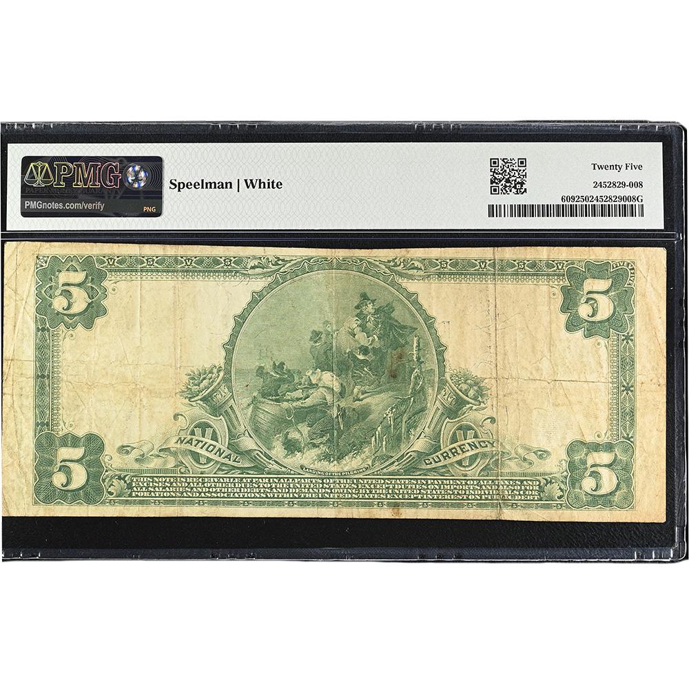 CVC & Collectables presents a classic $5 Series of 1902 Plain Back National Bank Note from Santa Monica, California, issued by The American National Bank and graded PMG 25 Very Fine. This large-size National features Benjamin Harrison at left with bold blue charter numbers and a matching blue seal, paired with the iconic “Landing of the Pilgrims” reverse vignette.