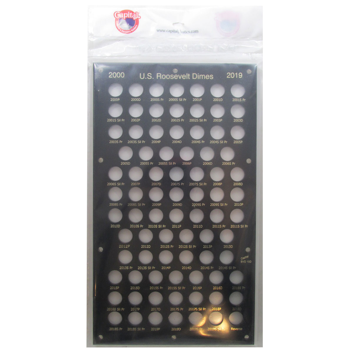 A black Capital Plastics holder is a practical and attractive choice for collectors and dealers who want a polished way to store and display modern Roosevelt Dimes. It keeps the coins organized, improves presentation quality, and offers a professional look for showcases, inventory, or personal collections.