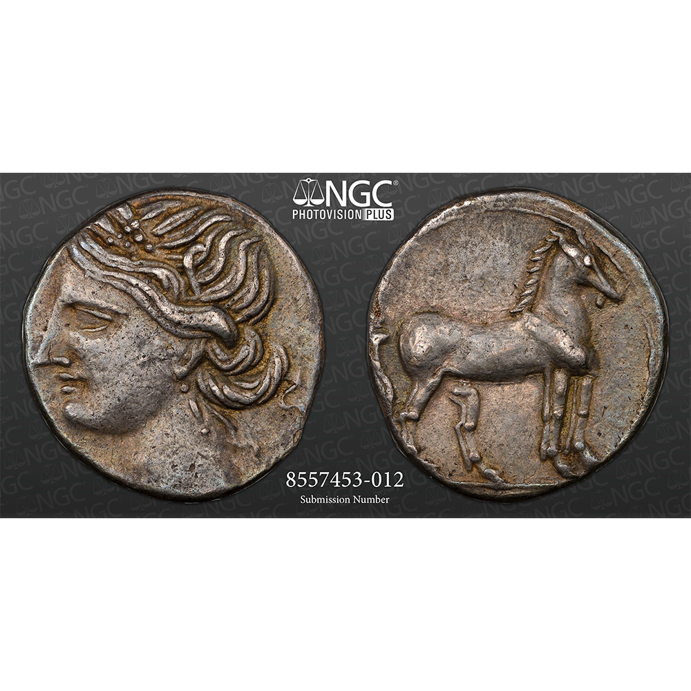 Hannibalic silver issues from Italy are among the most historically charged coins of the ancient world. This type combines exceptional artistry, a powerful war-era narrative, and strong eye appeal, enhanced here by a Choice XF grade with perfect strike and surface ratings. Coins struck during the Second Punic War remain highly sought after by collectors of Greek, Roman, and military history alike. Find more alike here!